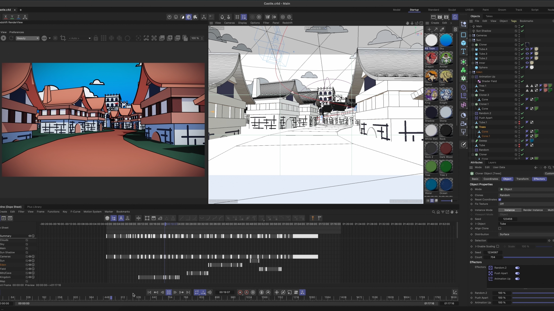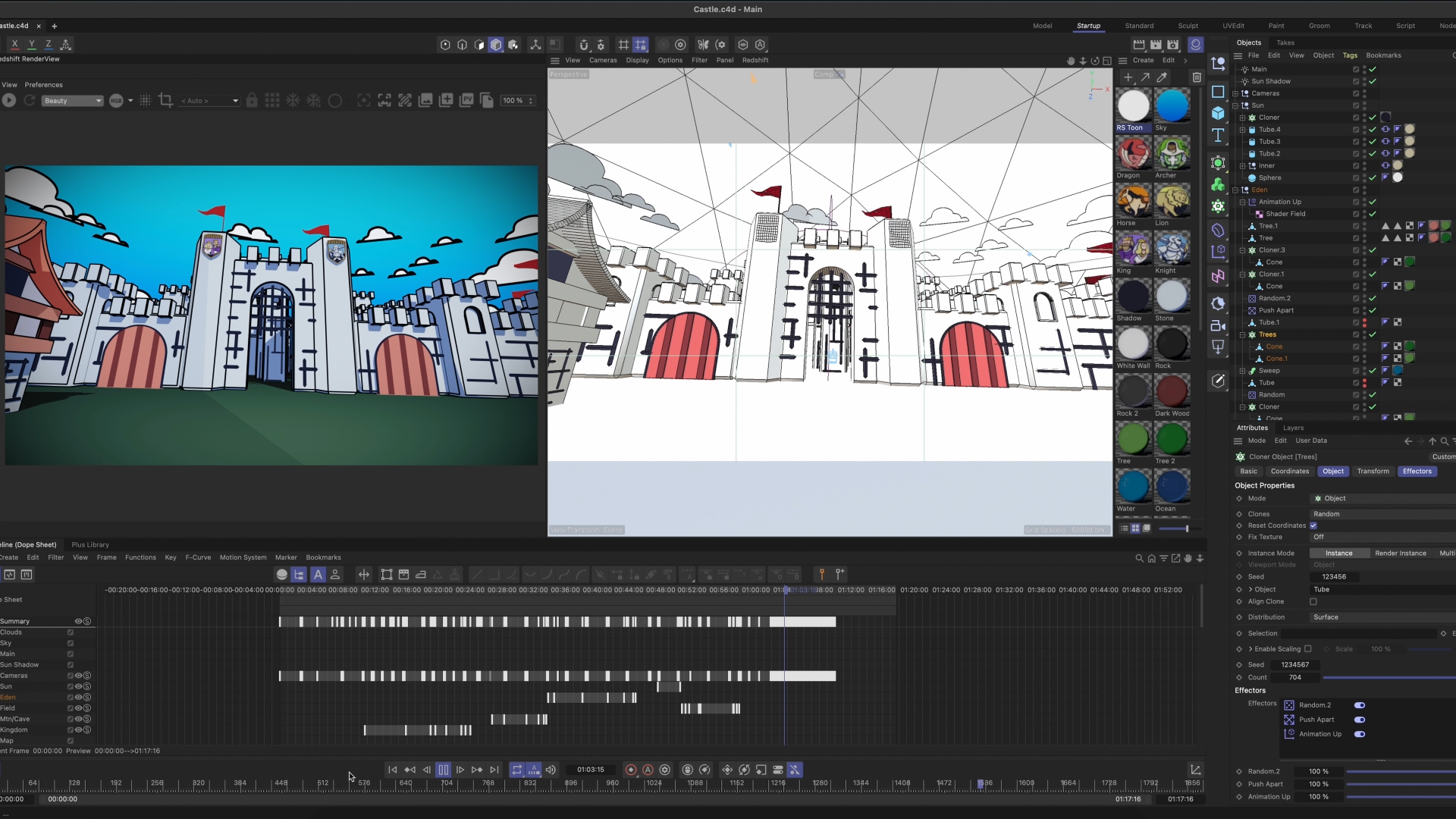 During our KidsCon event, we have skits that tell biblical stories and we have custom backgrounds on LED setting the environment. This particular year, we wanted to introduce the backgrounds and environment early on. So we created a title sequence / opener that introduced the environments. The theme this year was medieval and the branding style was very flat colors.